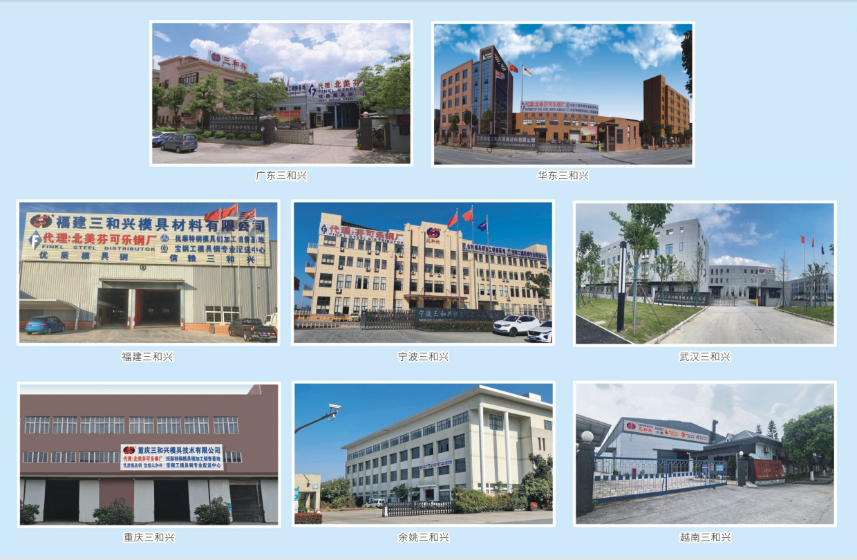三和興旗下廣東三和興模具材料科技有限公司(東莞三和興),投資用地17畝,2005年新建標準化廠房12000㎡,為三和興集團化管理總部所在地;江蘇華東三和興模具材料有限公司,于2013年1月在江蘇昆山成立,投資用地40畝,新建標準化廠房25000㎡;福建三和興模具材料有限公司于2017年9月在福建泉州成立,于2024年喬遷至廈門;寧波三和興模具技術有限公司,于2018年11月在寧波寧海成立,投資用地32畝,新建標準化廠20000㎡;武漢三和興模具技術有限公司,于2020年11月在武漢市經開區成立,投資用地23畝,新建標準化廠房12000㎡;重慶三和興模具技術有限公司,于2021年9月在重慶璧山成立運營,并投資用地25畝,新建標準化廠房15000㎡,計劃于2025年投產;三和興(越南)模具技術有限公司,于2023年4月在越南興安成立,投入標準化廠房6000㎡;余姚三和興模具技術有限公司,于2023年7月在寧波余姚成立運營,計劃投資用地30畝新建標準化廠房;佛山市三和興模具技術有限公司,于2023年12月在廣東佛山成立,投資用地20畝,新建標準化廠20000㎡,計劃于2025年竣工,2026年投產;中山市三和興模具材料有限公司,于2024年2月在廣東中山成立 ,投入標準化廠房近4000㎡,為周邊區域客戶提供高效快捷的就近服務。